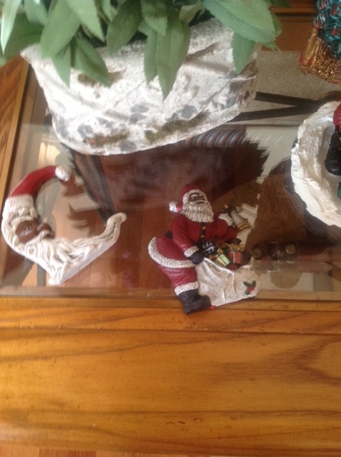 When the family Christmas Gatherings, outgrew the space in our home, the Eldest Daughter said, “Let’s move the Santa’s to my home so we can continue to enjoy them.” I agreed and visited my Santa’s at her house every Christmas Holiday until retirement brought us to Florida in 2010.